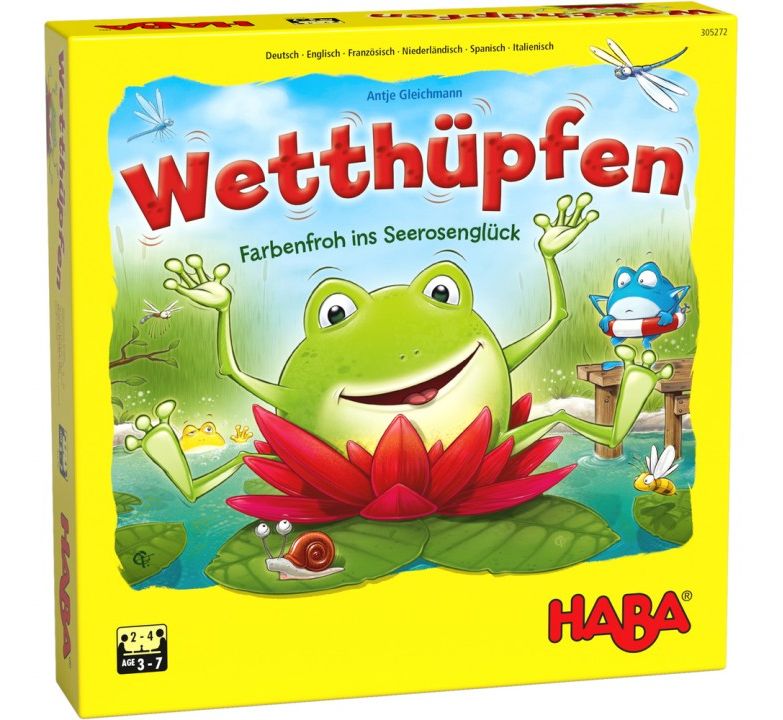 Комплектация: 1 коробка с 4 разделителями, 1 игровое поле, 16 лепестков кувшинки, 4 шарика-лягушки, 2 кубика, 1 комплект инструкций на английском, немецком, испанском, французском, итальянском и голландском языках.