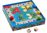 - Бросьте кубики: Выпало изображение мухи? Переместите лягушку на следующую незанятую ячейку с мухой. На кубике выпал цвет? Переместите лягушку на следующую незанятую ячейку соответствующего цвета.