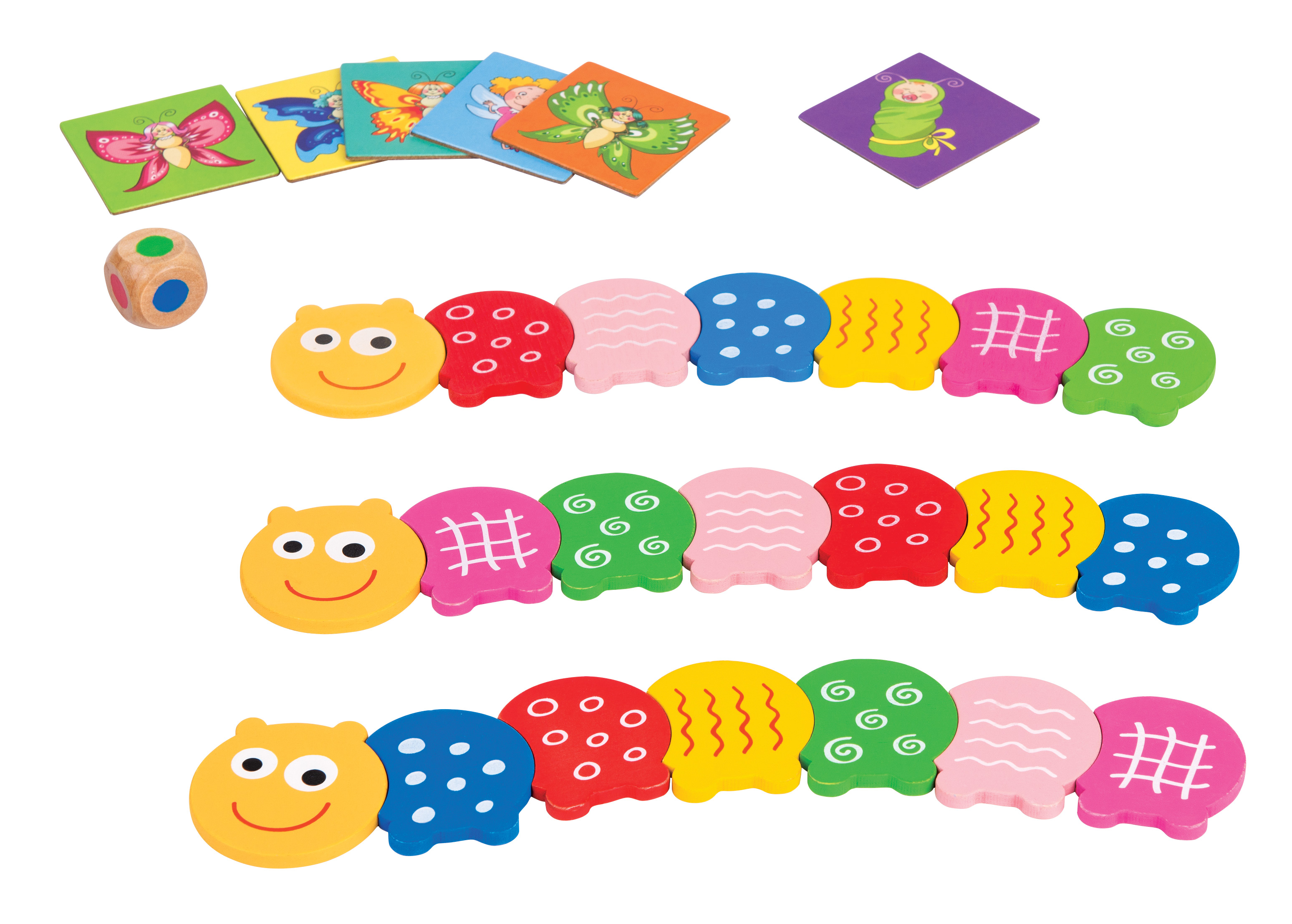 В наборе две игры: постройка гусеницы и классическое мемори.