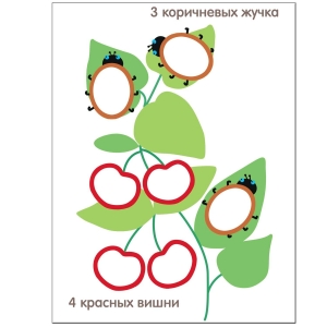 На второй – три коричневых жука и четыре красные вишни и т.д.