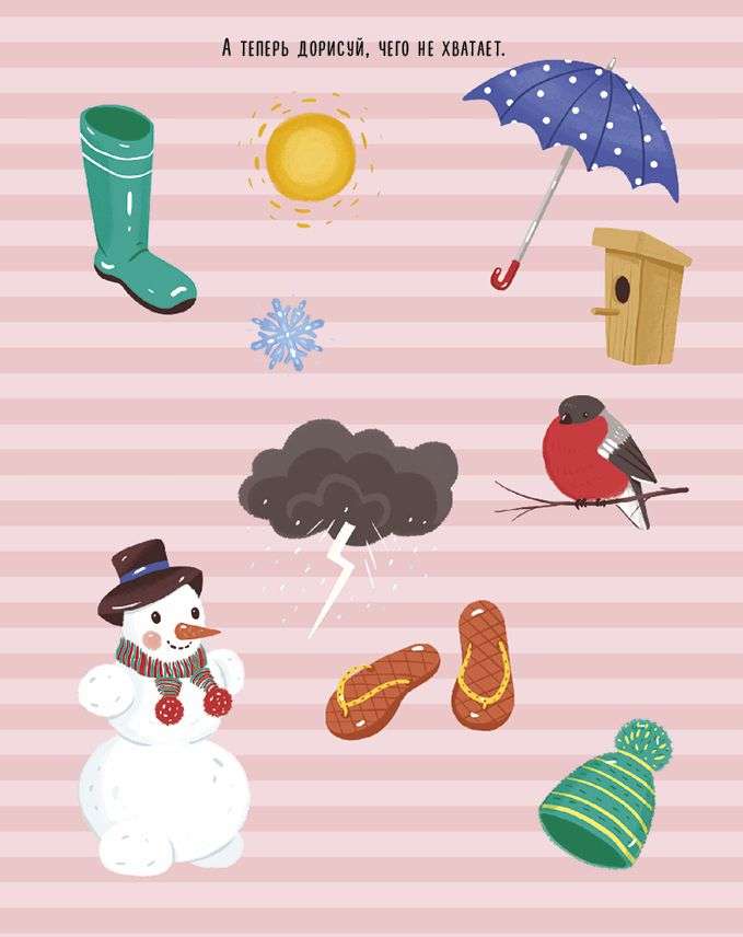 Займите юного художника веселыми творческими заданиями в поезде, самолете или машине! В удобной и красочной коробке вы найдете 45 двусторонних карточек и 90 самых разнообразных развивающих заданий. Ребенок с удовольствием будет разгадывать ребусы, раскрашивать, дорисовывать детали мозаик, находить сходства и различия, считать птенцов на ветке. Он и не заметит, как пролетит время в дороге!