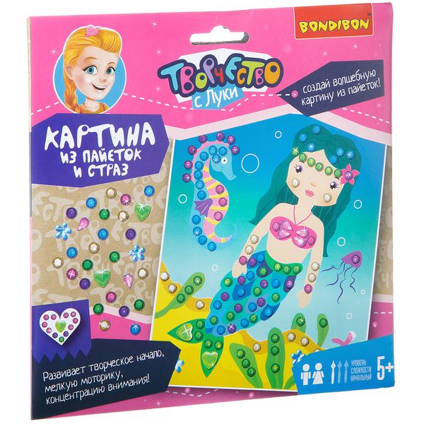 Bondibon предлагает создать яркую аппликацию с помощью пайеток и блестящих страз.