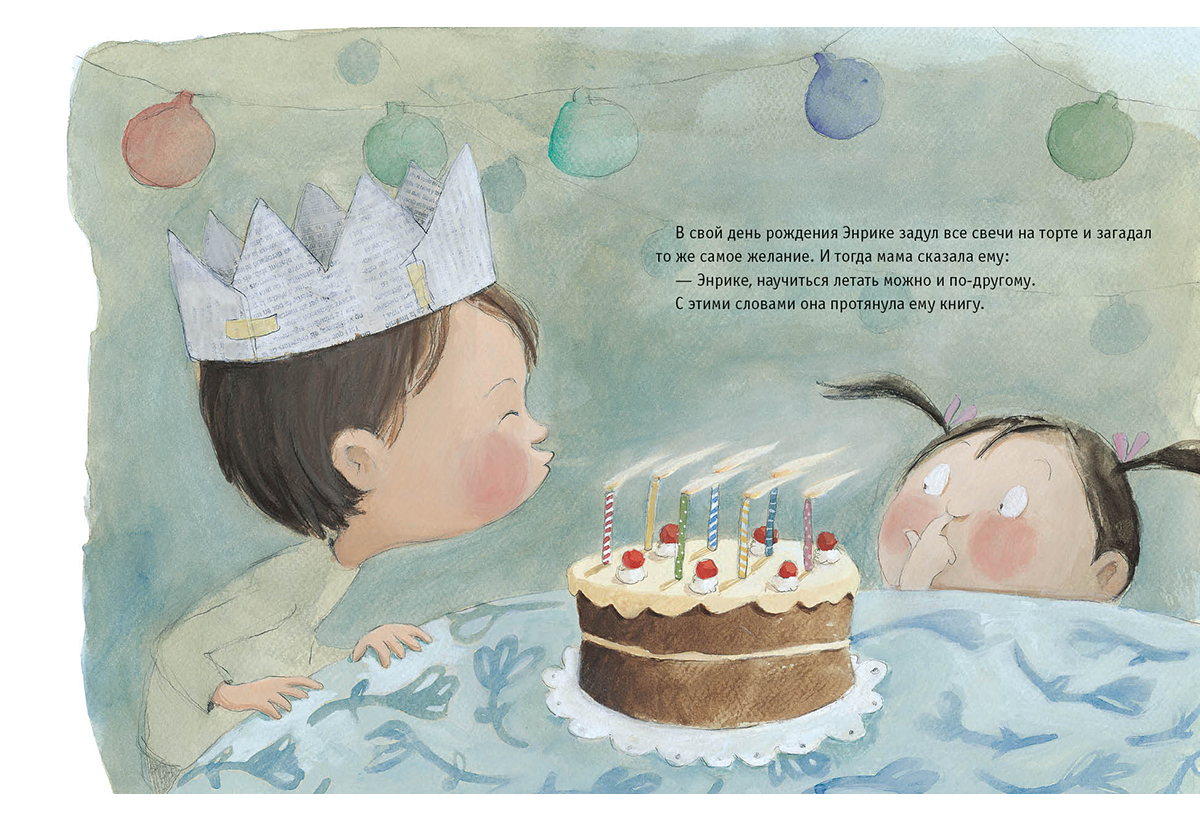 Кто из нас в детстве не мечтал научиться летать? Энрике тоже мечтал, как все дети, о полётах. А ведь для этого обязательно нужны крылья! Энрике хотел получить их на день рождения, и даже пытался смастерить сам, но ничего у него не получалось. Как же ему научиться летать? И однажды мама подарила ему...книгу