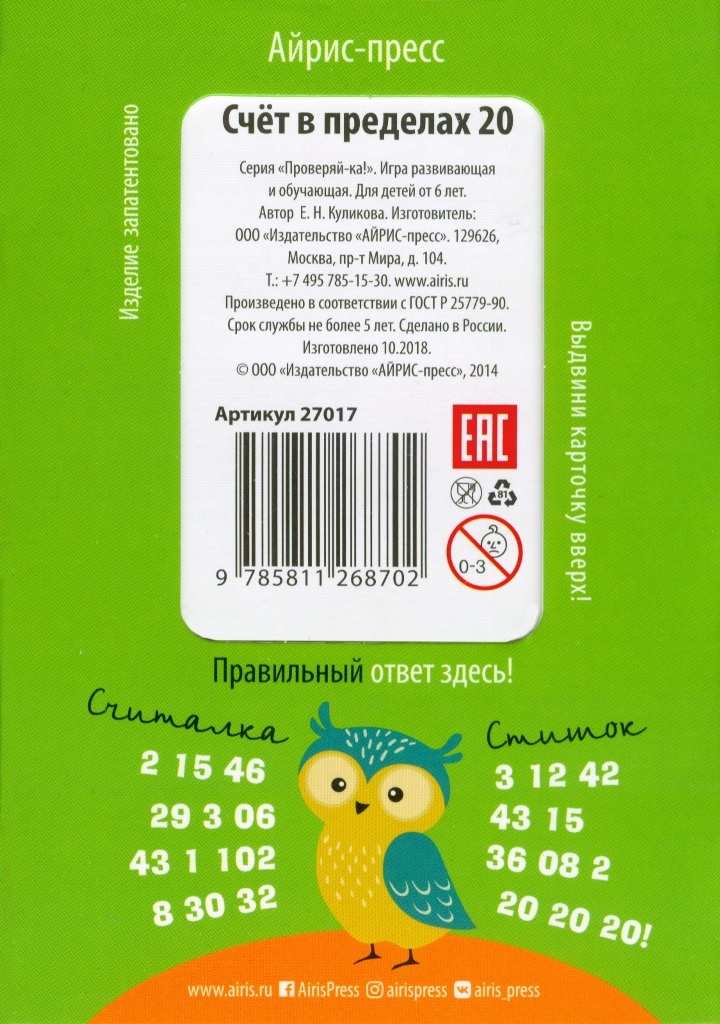 Задания помогут ребёнку отработать навык сложения и вычитания в пределах 20. Обучение по этим карточкам нравится детям, они с удовольствием работают с ними самостоятельно.