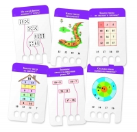 Во второй игре нужно соединять линиями пары чисел, заполнять таблицы, искать сумму, закрашивать фрагменты рисунка с правильными ответами и т. п. Ответ вписывается карандашом, затем можно вытянуть карточку из блока и проверить себя, сверяя свой ответ с правильным.