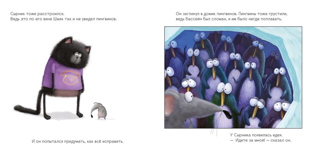 Котёнок Шмяк стоит на пороге осуществления своей мечты – именно сегодня он с классом идёт в зоопарк и наконец-то увидит живых пингвинов! А как же быть с лучшим другом – мышонком Сырником? Ведь мышей в зоопарк не пускают, потому что их боятся слоны. Неужели придётся оставить друга дома? Что придумал Сырник? Попадёт ли он в зоопарк и что из этого выйдет? Скорее открывайте книгу и читайте!