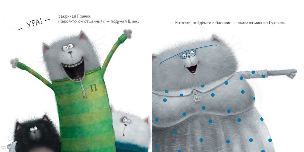 В этой книге Шмяк вместе с классом отправляется в бассейн. Но Шмяк вовсе не хочет учиться плавать: вода противная, мокрая, и он от неё НАМОКАЕТ! Оказывается, его приятель Шип думает точно так же. Как же котятам решиться сделать первый шаг и войти в воду?