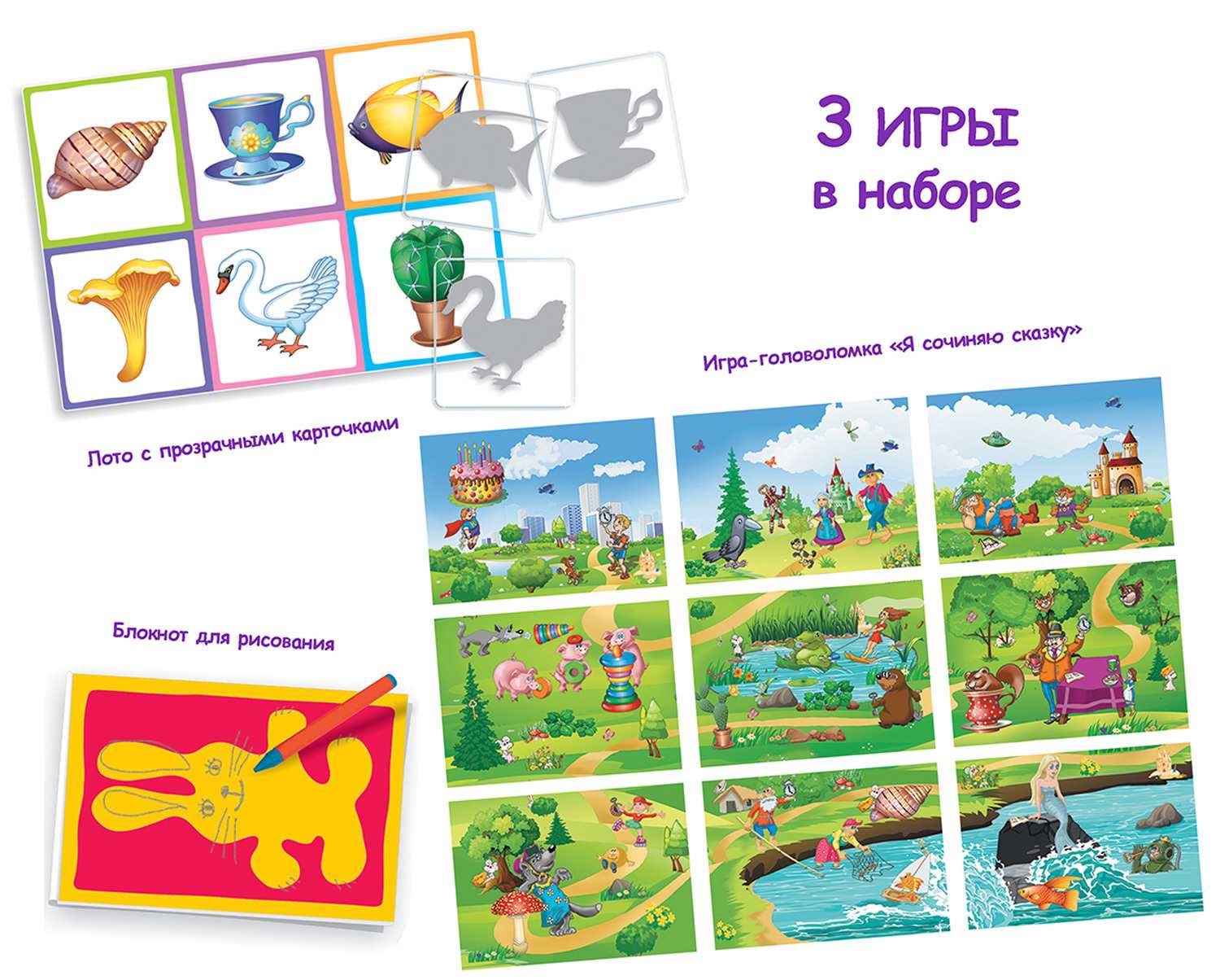 Играя в интеллектуальное лото, ребёнок будет соотносить предмет и его проекцию, выделять детали образа, формировать образ по силуэту. Выполняя задания игры-головоломки, он учится замечать, рассматривать и запоминать детали; исправляет "ошибки" художника; фантазирует, придумывая истории на основе любимых сказок.