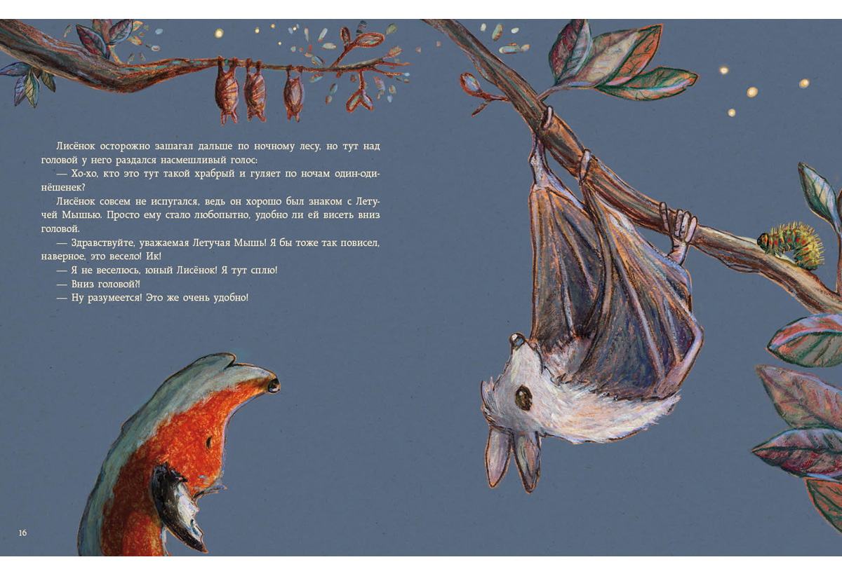 Может быть, Летучая Мышь на самом деле спит вверх ногами? А кто издаёт эти смешные звуки на старой ели? И каким секретом поделится мудрая Сова с маленьким Лисёнком? Это, ещё одно удивительное открытие малыша, поможет ему видеть только добрые и сладкие сны.
