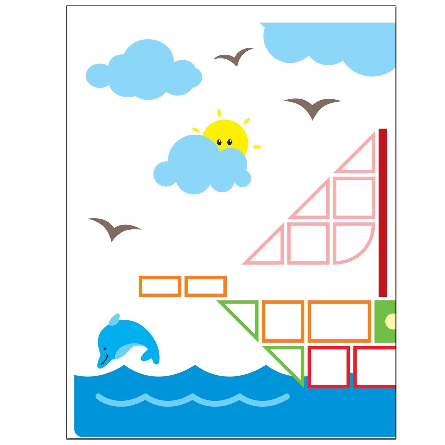 На двух приложениях малыш найдет множество геометрических многоразовых наклеек.
