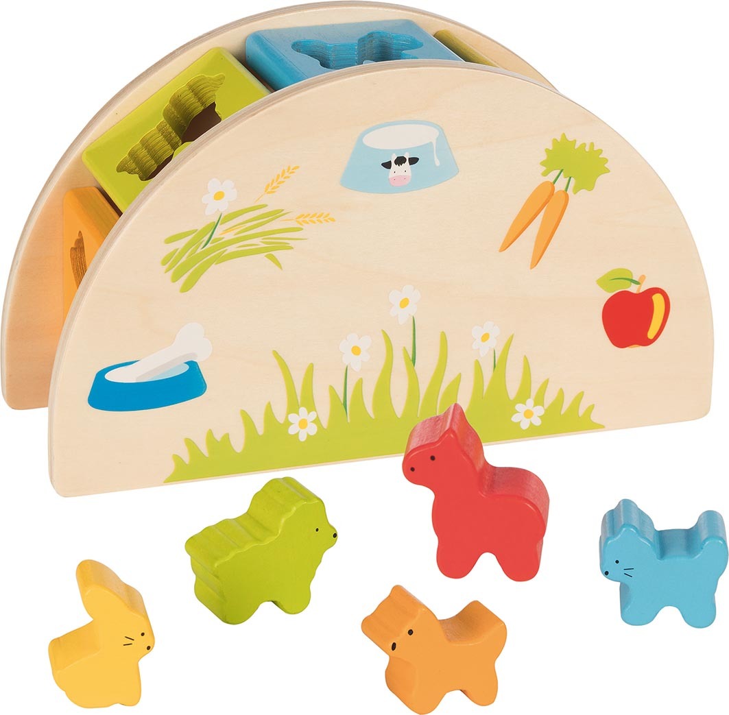 Цель игры: Развивающая игрушка "Сортер" представляет собой коробочку, на крышке которой вырезаны различные контуры животных. Также в комплекте есть 5 разноцветных фигурок животных. Все элементы набора сделаны из дерева. Ребенок должен вложить вкладыши фигур животных в соответствующие отверстия. Если он сделает это правильно, фигурки упадут в коробочку.