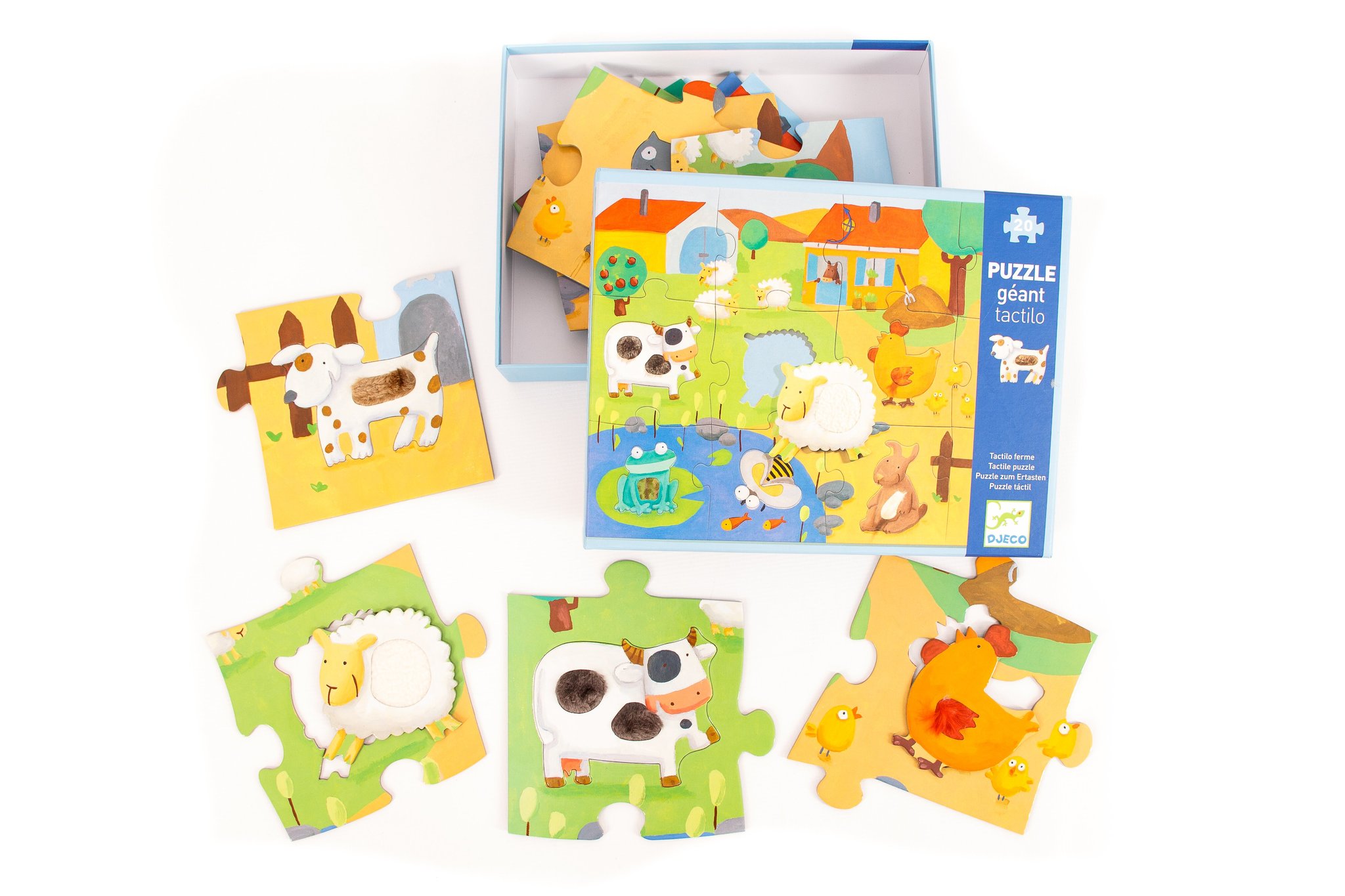 Тактильный пазл-гигант Ферма от французского производителя Djeco (Джеко) может стать самым первым и самым любимым пазлом Вашего малыша. В раннем возрасте особо важны тактильные ощущения, которые играют особую роль в познании мира, опережая другие способы восприятия.