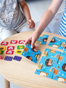 В первых двух головоломках тебе предстоит собрать квадратики так, чтобы получилось изображение! Но будь внимателен, так как карточки двухсторонние. А в третьей игре приготовься к защите мышек от хитрых усато-полосатых котиков! Победа должна быть обязательно на твоей стороне! В третьей игре, на основе классической игры Мемо, нужно следовать правилам инструкции и собрать необходимые комбинации из фишек. Всего в игре 12 фишек. Игра тренирует память ребенка.