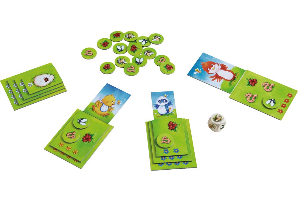 Ах, что там вылупилось? Четверо маленьких нахальных цыплят выбираются из скорлупы, и у них огромный аппетит. Только одно поможет - еда! Но будьте осторожны. Бросок кубика будет определять, что можно кормить цыплят и как быстро они будут расти. Кто из них первым вырастет в величественную маленькую птицу?