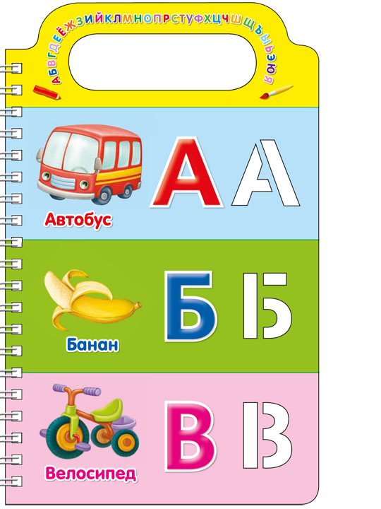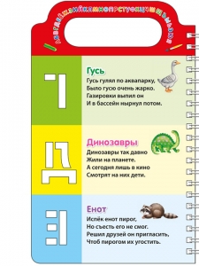 - Множество трафаретов с буквами, веселые стихи для запоминания, а также красочные картинки с подписями.