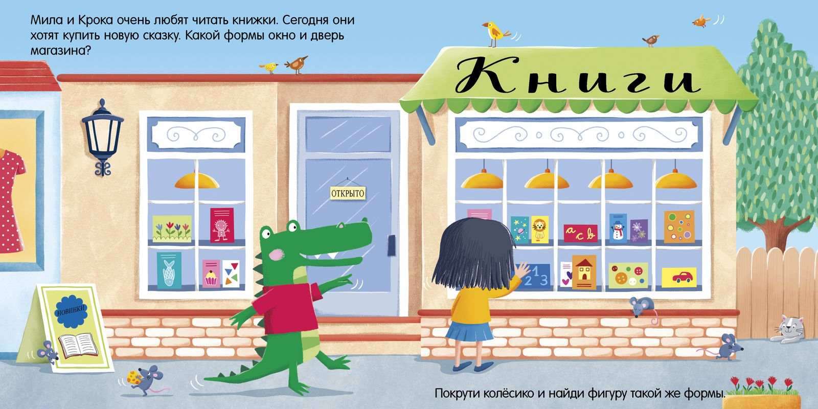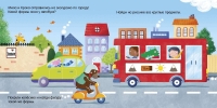 Здания, машинки, вывески на магазинах помогут выучить цвета и формы, а яркие картинки не дадут заскучать.