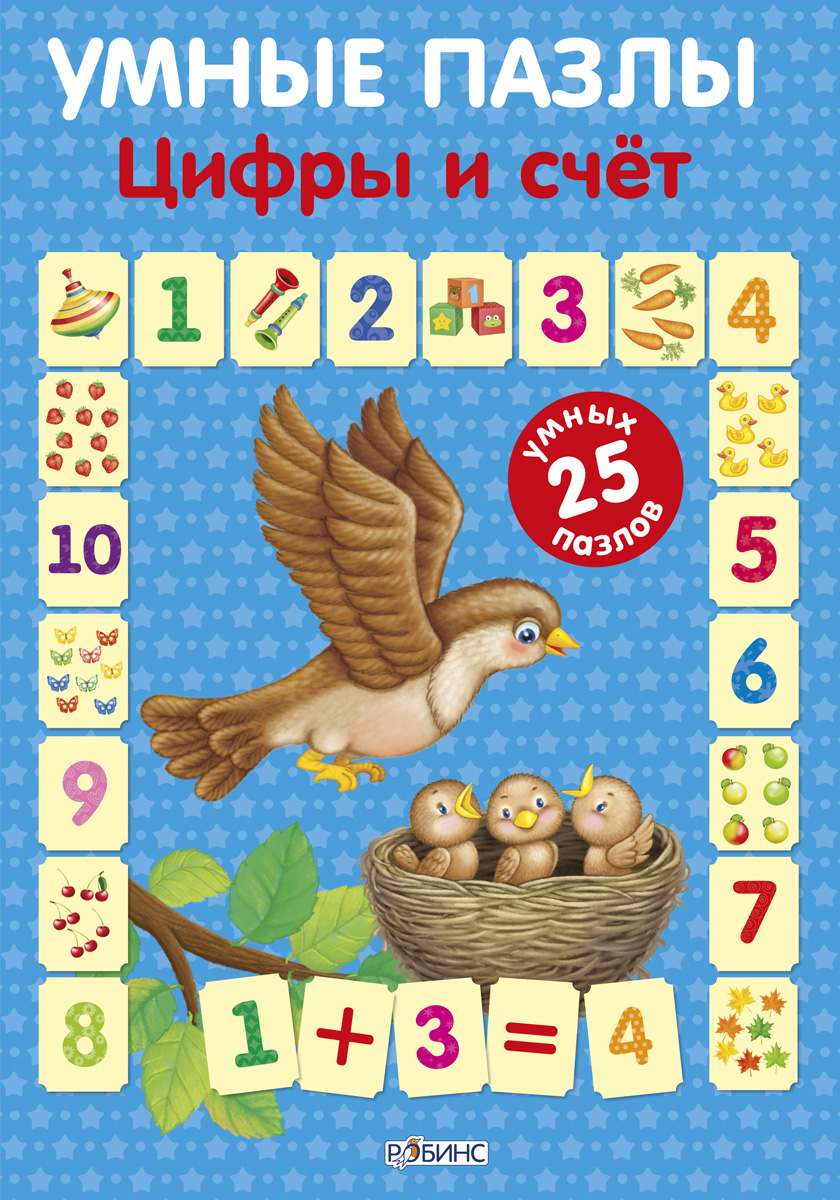 На вынимающихся пазлах нарисованы числа от 1 до 10 и предметы, которые можно посчитать. На внутренней сторонке обложки находится игровое поле с картинками и числами. Накладывайте на игровое поле квадратики-пазлы так, чтобы числа и количество предметов на картинках совпадали.