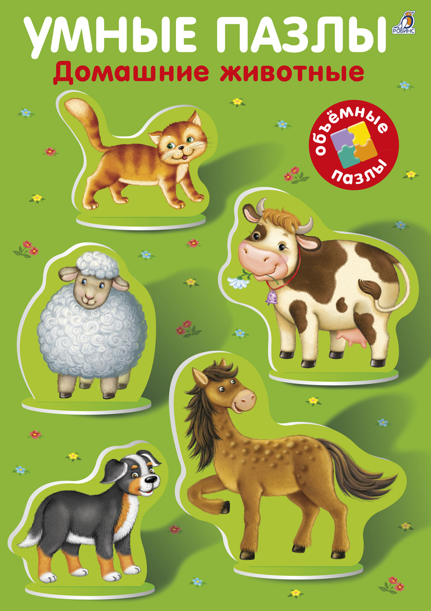 - Вытащите пазлы с изображениями животных и поставьте их в пазлы-подставки. Под изображениями животных находятся тексты с описаниями: прочитайте их малышу, обязательно озвучьте «речь» каждого животного («Мяу-мяу!», «Му-у-у!», «Бе-е-е!», «Гав-гав!», «И-го-го!»).
