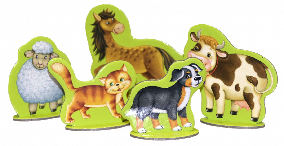 - Вынимающиеся пазлы с изображениями животных и подставки для них.