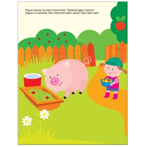 На ярких страницах этой книги малыш встретит котенка, щенка, жеребенка, теленка, цыплят и других обитателей деревни, побывает в огороде, в саду, на птичьем дворе, на пруду, узнает, кто пасется на лугу.