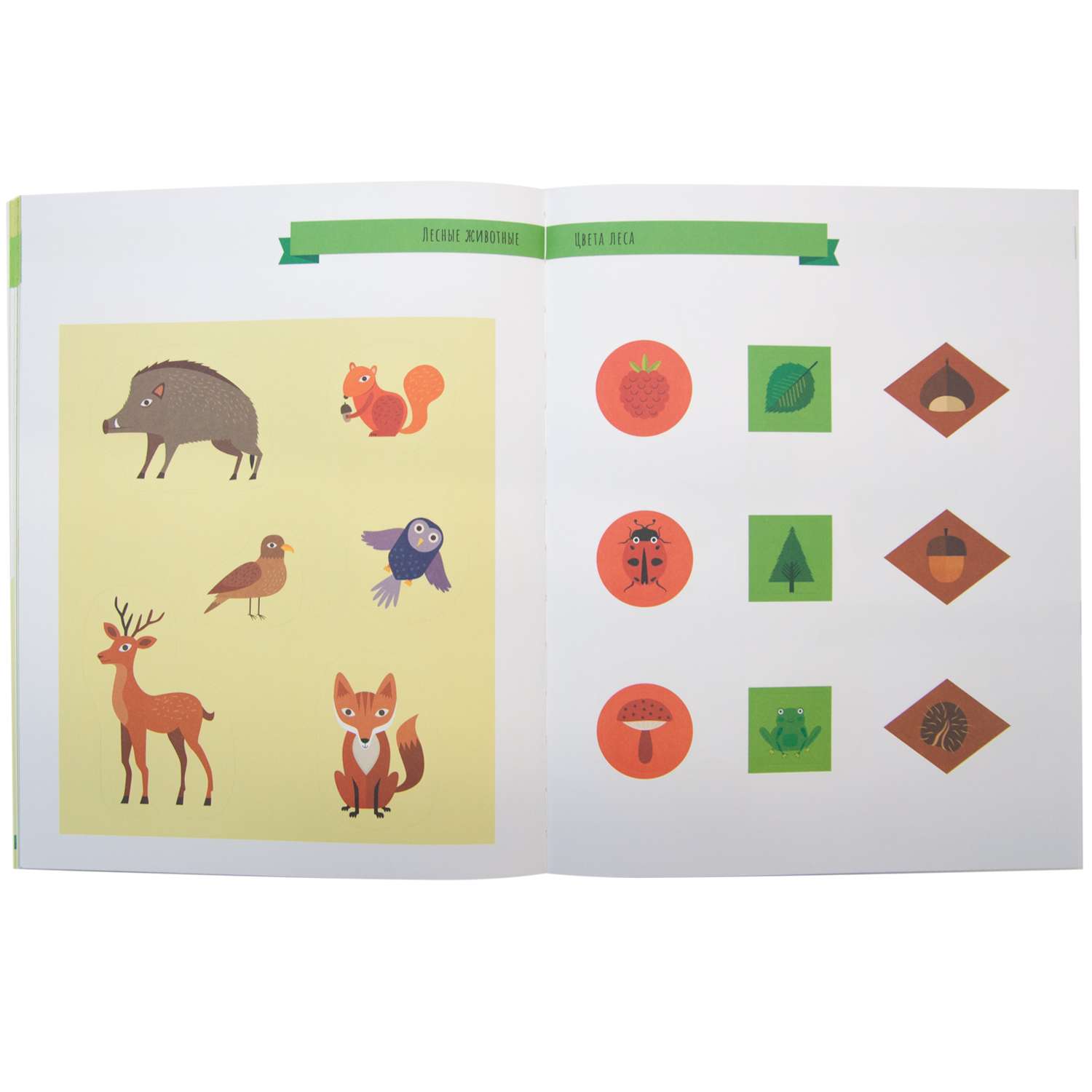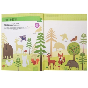 Красочная книга-активити с наклейками «В лесу» предназначена для развития логического мышления и познавательных навыков в игровой форме.