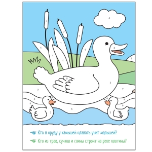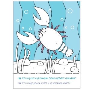 Внутри малыша ждут трудолюбивый бобер, яркие рыбки и другие очаровательные обитатели реки, а также веселые загадки, которые не оставят его равнодушным и превратят процесс раскрашивания в увлекательную игру.
