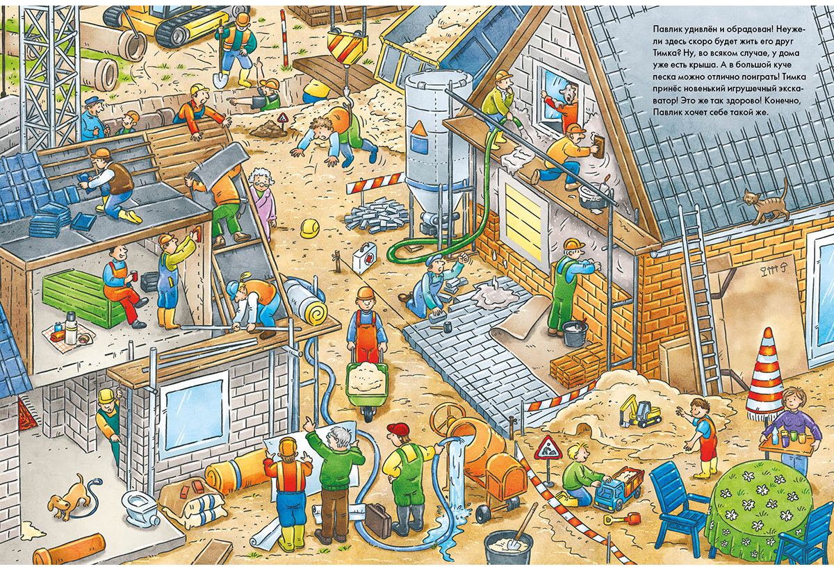 Но где же во всей этой суматохе спрятался маленький жёлтый экскаватор, который так нравится Павлику?