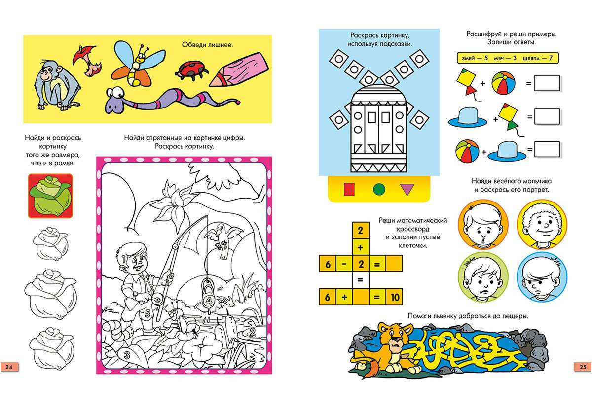 На отдыхе, дома, в поездке или на даче решайте "Весёлые задачки" вместе с вашим ребёнком. Погружайтесь в занимательный мир лабиринтов, головоломок, раскрасок и "сравнилок". Наблюдая за малышом в игре, вы сможете оценить его способности.