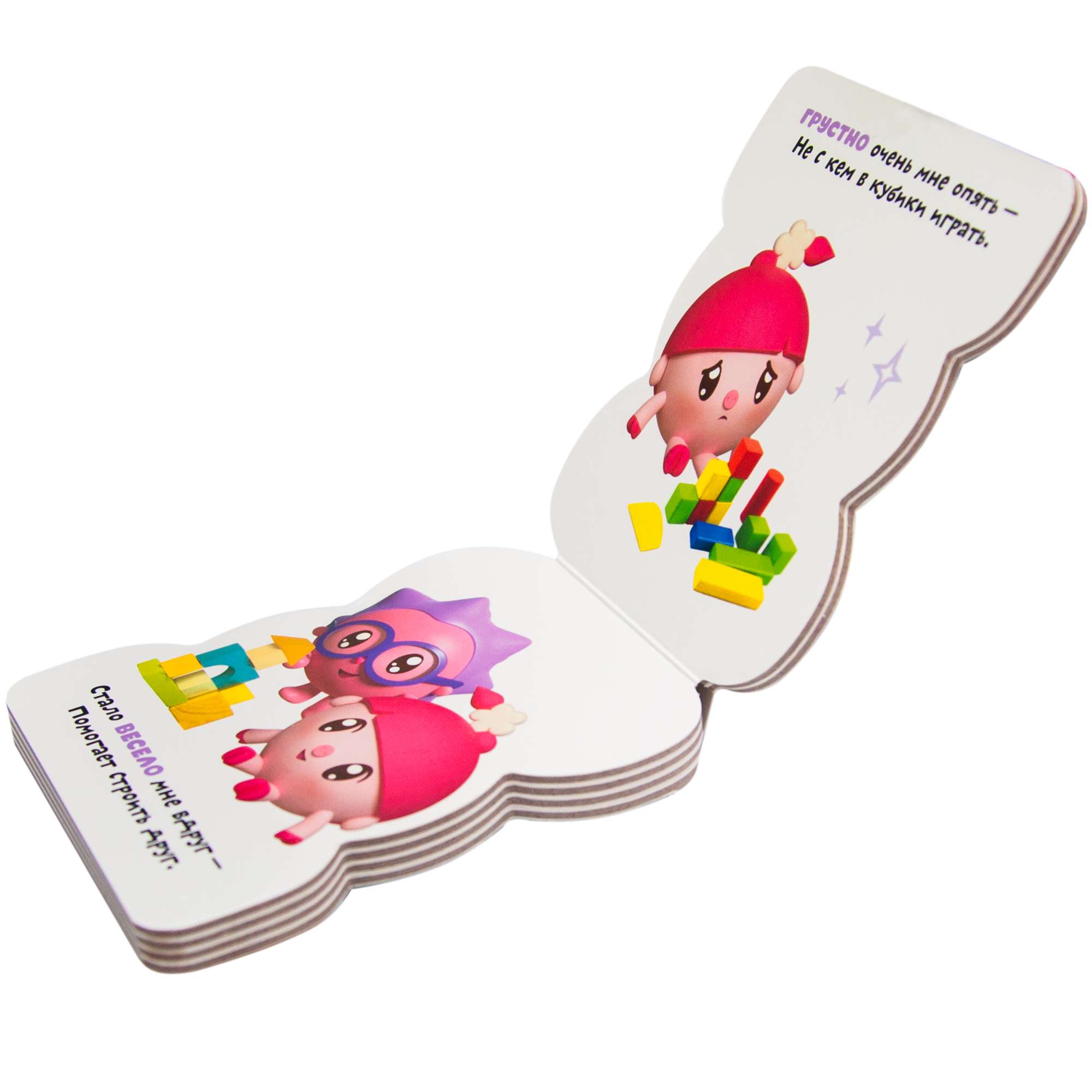 С книжкой «Веселый - грустный» серии «Малышарики. Книжки-фигурки» можно играть, как с игрушкой! Книжка-игрушка в форме очаровательного Крошика познакомит малыша с антонимами. Рассматривая крупные иллюстрации и слушая веселые стихи, он легко запомнит понятия: «веселый» и «грустный».