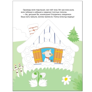 С книжкой «Волк и козлята» серии «Рисуем по точкам» Ваш ребенок почувствует себя настоящим художником. Ему предстоит создать красочные иллюстрации к любимой русской народной сказке. Для этого малышу нужно лишь аккуратно обвести пунктирные контуры, а затем раскрасить получившиеся картинки с помощью карандашей или фломастеров.