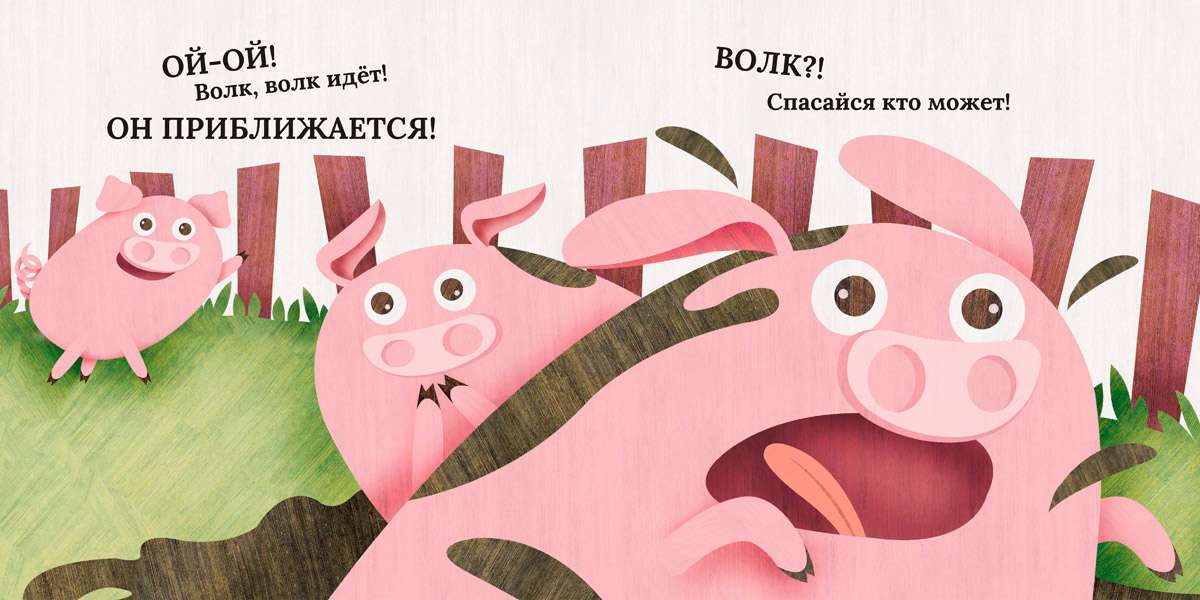 Эту весёлую историю придумала и нарисовала иллюстратор из Италии Мариса Вестита. В этой книге художница показывает детям, как могут подружиться абсолютно разные создания. Волк и поросёнок, встретившись однажды на лужайке, неожиданно обнаружили, что похожи как две капли воды!