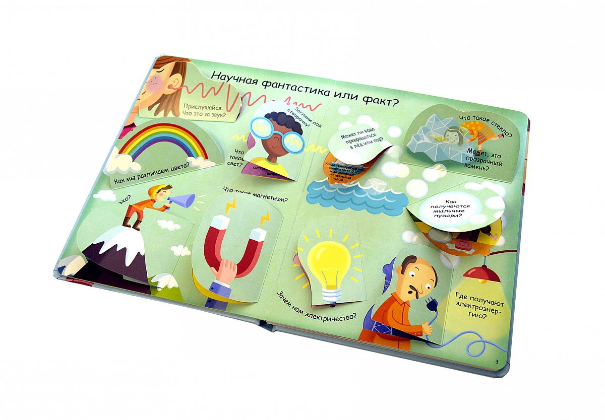 - Яркие и детальные иллюстрации, а также 60 створок с интересными и удивительными фактами обо всем, что нас окружает.