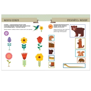 Распределяя по страницам наклейки, дорисовывая и раскрашивая картинки, решая интересные задачи и головоломки, ребенок познакомится с особенностями каждого времени года, концепцией их смены и связанными с ней природными явлениями, узнает много нового о метеорологии, выращивании растений, привычках животных и подходящей для каждого сезона одежды.