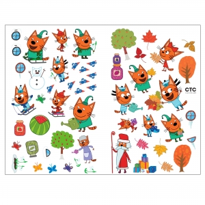 Времена года (Три кота. Развивающие наклейки), книга с многоразовыми наклейками