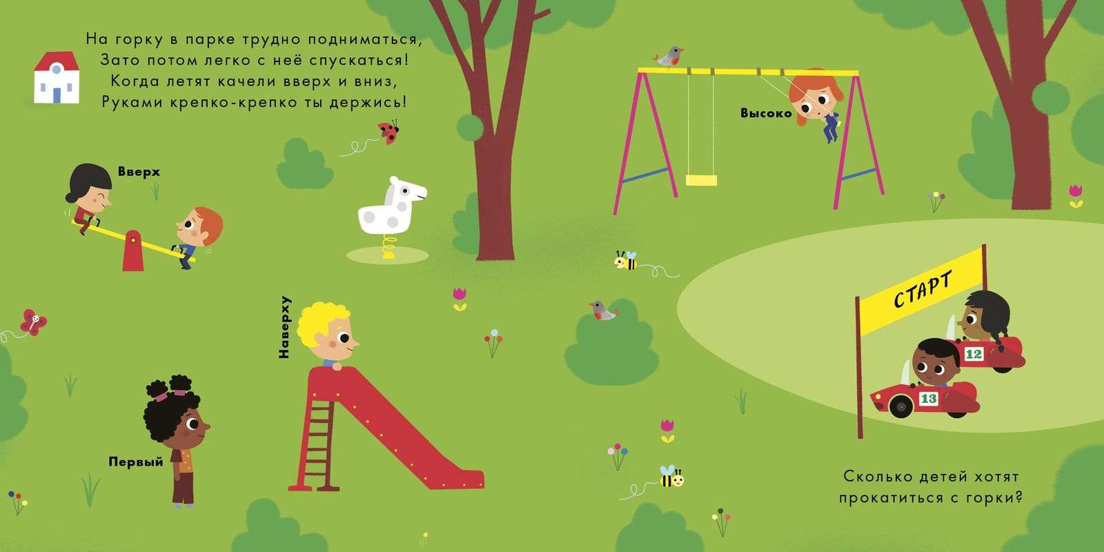 Каждая страница этой книги переключает ребенка на выполнение различных активностей: найди и покажи, сосчитай, расскажи историю и многих других. Учите новые слова, сочиняйте истории, обсуждайте с малышом ситуации на картинках. Это оригинальный и легкий способ обучения и развития творческого потенциала вашего ребенка. Эта книга предназначена для совместного чтения и общения детей и взрослых.