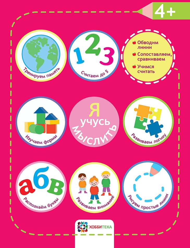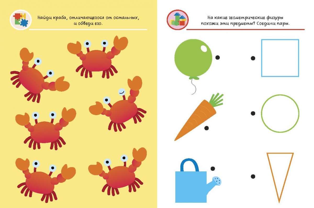 Кроме того, упражнения, тщательно подобранные педагогами для каждого возраста, развивают важнейшие стороны мышления малыша: память — в рубрике «Тренируем память», логическое мышление — в рубрике «Развиваем логику», усидчивость и наблюдательность — в рубрике «Развиваем внимание».