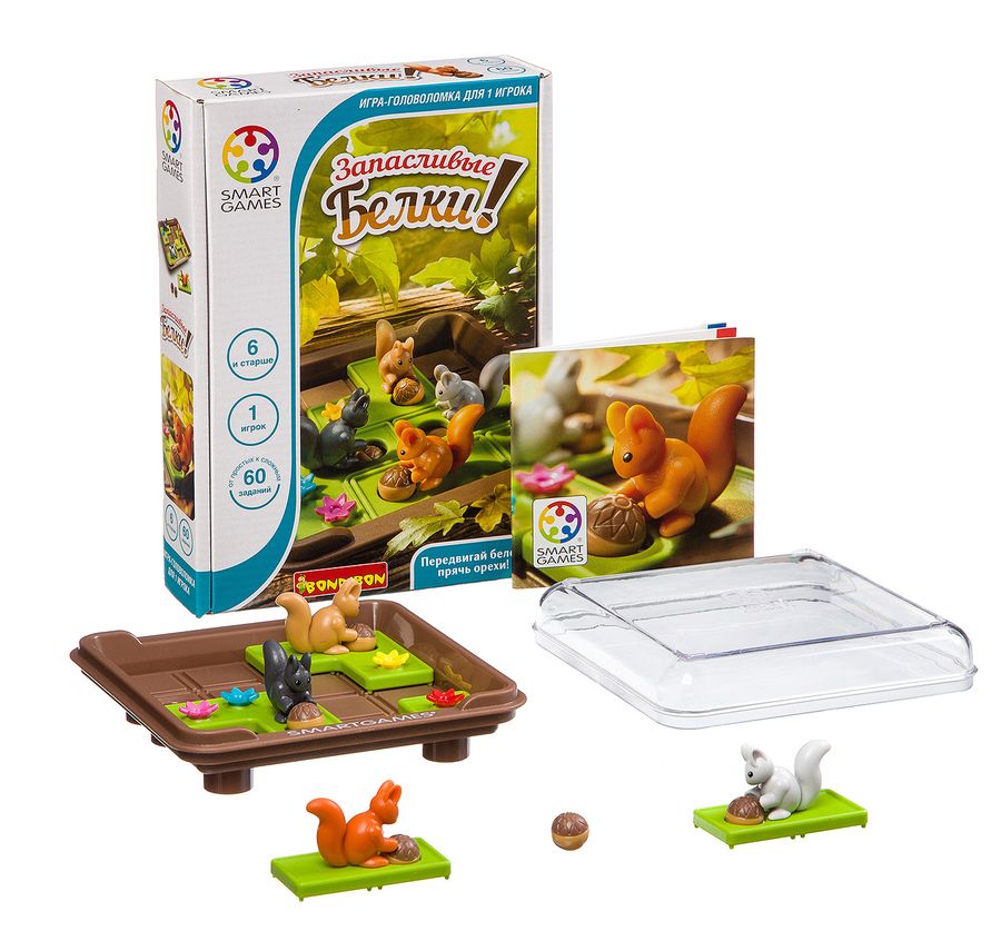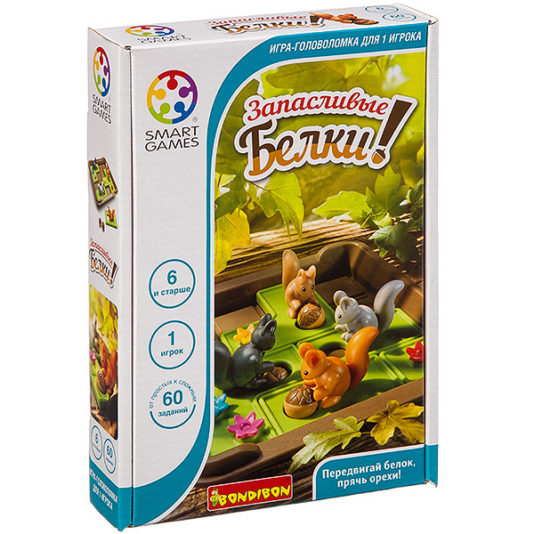 Помогите белкам подготовится к зиме. Вас ожидают 60 заданий, разделённых на несколько уровней сложности. Разместите фигурки белок согласно заданию, а затем передвигайте их по доске так, чтобы все орехи оказались под землёй. Компактные размеры игры позволяют легко брать её с собой в дальнюю дорогу.