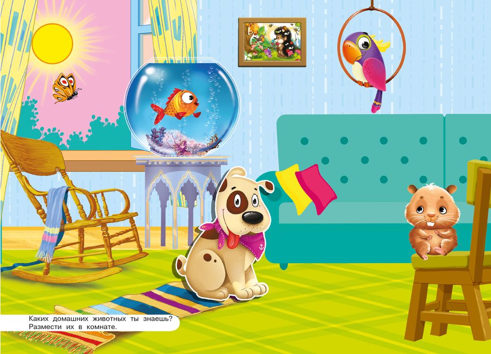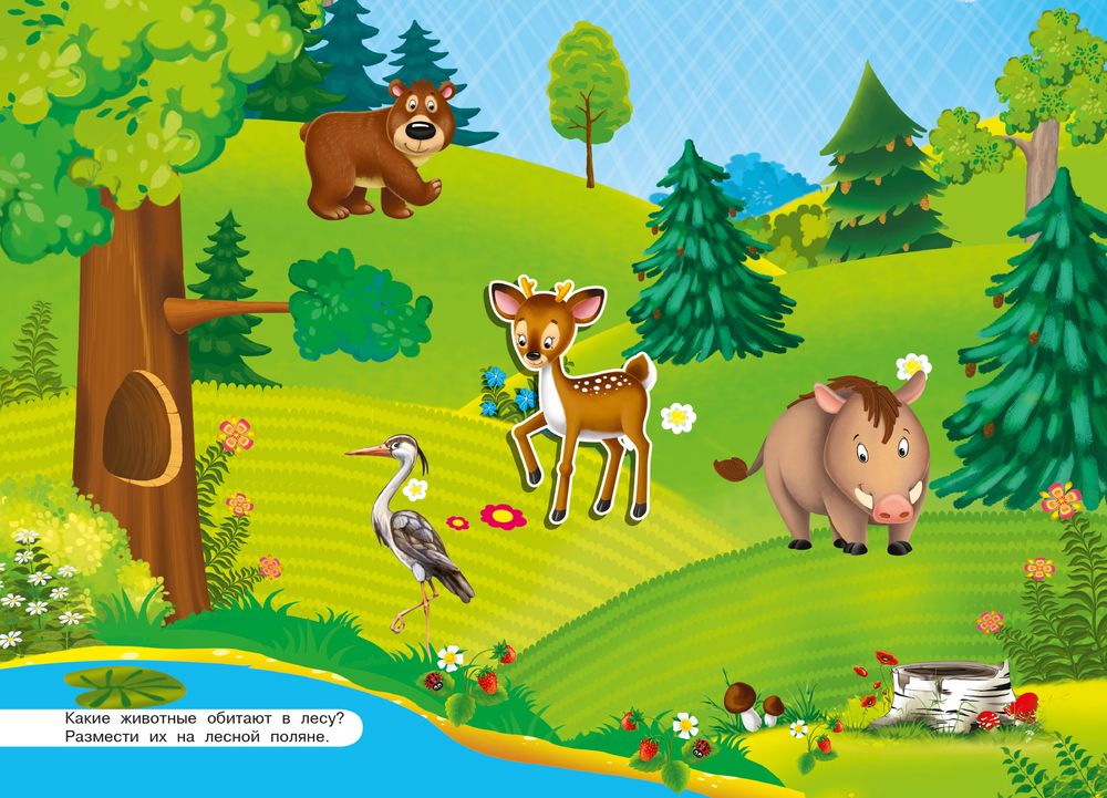На каждом книжном развороте нарисованы определённые места обитания животных, а специальная вставка содержит красочные многоразовые наклейки с изображениями различных животных, обитающих на нашей планете. Они привлекут внимание Вашего малыша и станут увлекательным элементом игры во время совместных занятий. Прочитайте ему поясняющий текст задания, а он сможет сам подобрать подходящую наклейку.