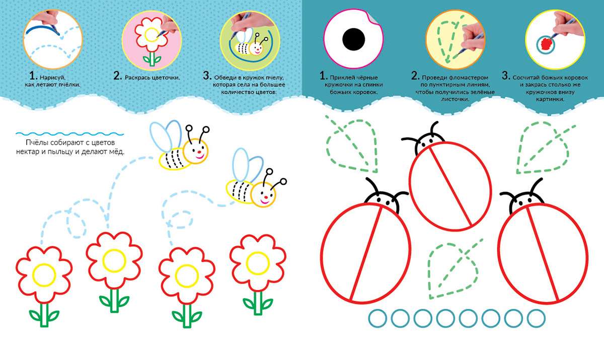 Эта книга про животных, насекомых и птиц. С нею ты научишься рисовать, раскрашивать и аккуратно приклеивать наклейки. А ещё узнаешь много интересного! На каждой странице — если постараешься — у тебя получится маленький шедевр, для этого достаточно выполнить три простых шага — и готово!