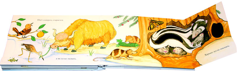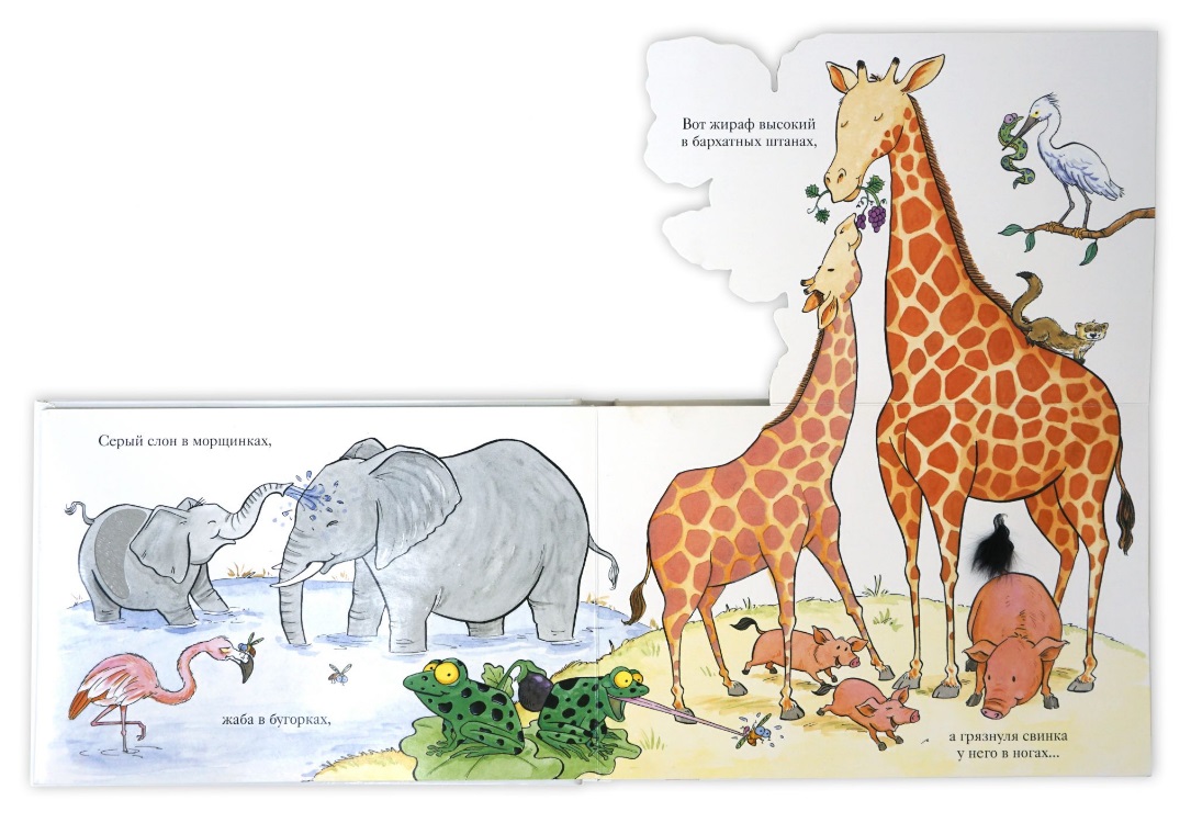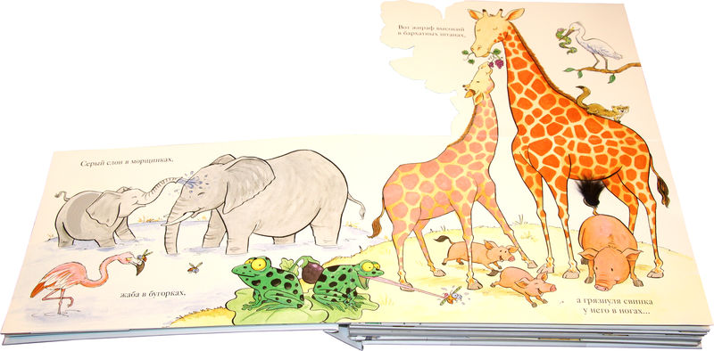 Эта книжка адресована любознательным малышам и их родителям. Раскрыв её, вы окажетесь в необычном зоопарке, скорее даже в заповеднике, где обитают самые разнообразные животные и растения. Вы сможете не только прочитать забавные стихи о них, но – внимание! – узнать, каковы на ощупь, например, шкура носорога или хвост обезьяны. На каждом развороте вас ждут сюрпризы — открывающиеся клапаны и движущиеся детали.